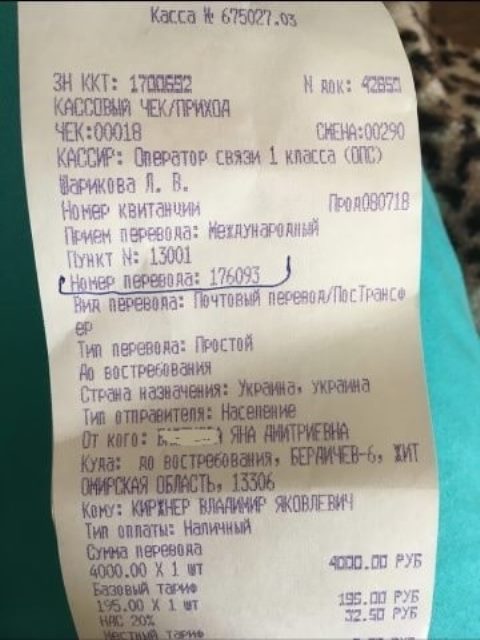 В частности, деньги, отправленные Яной из Благовещенска, в Бердичеве получал некто Киржнер Владимир Яковлевич. Это гражданин с уголовным прошлым, который в секте занимается «силовым» решением вопросов и выбиванием денег. В дальнейшем мы уделим ему и остальной компании особое внимание.