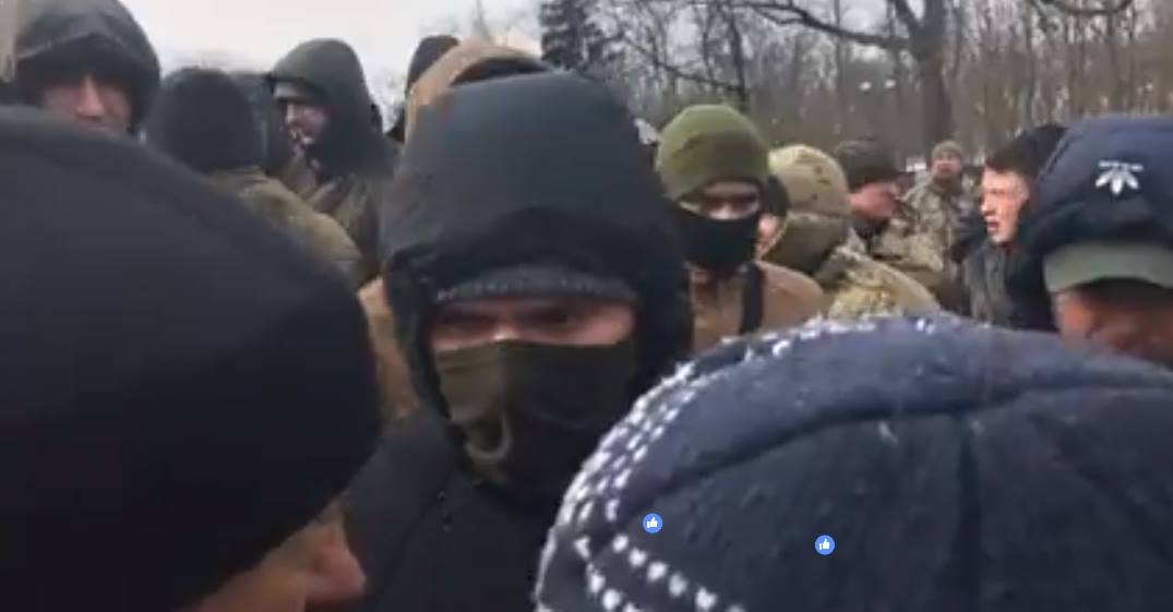 Примечательно, что к происходящему присоединились люди в черной форме и балаклавах, представившиеся “ультрасами”, но которых активисты опознали как “Східний корпус” и охранную фирму “Антирейдер”. Только присоединились они не к активистам, а к полицейским, начав обзывать собравшихся для проведения митинга пособниками Кремля и провокаторами в интересах российских выборов. Возле памятника Шевшенко эти лица стали провоцировать на конфликт и потасовки. В настоящее время происходят потасовки с ними. Также появились провокаторы от “Лже-Донбасса” Филина , которые тоже пытались спровоцировать конфликт.
